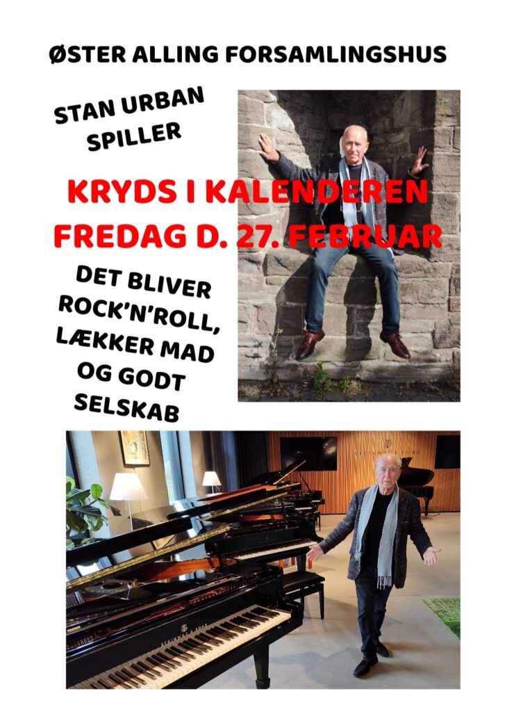Kom til en festlig aften i Øster Alling forsamlingshus. Der er lækker fællesspisning og rock’n’roll leveret af den legendariske Stan Urban.
